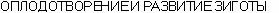 Оплодотворение — физиологический процесс, заключающийся в слиянии яйца и спермиев с последующей их ассимиляцией и диссимиляцией, в результате чего образуется новая клетка (зигота), обладающая двойной наследственностью.