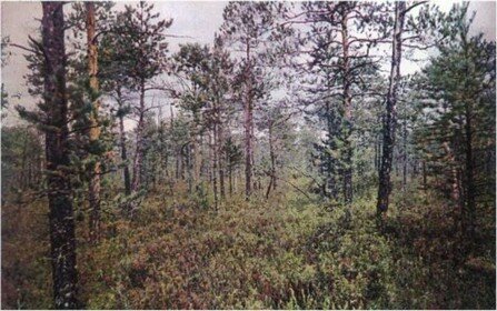 Большинство водораздельных болот таежной зоны наступает на окружающие леса. Согласно выводам М.И.Нейштад- та (1972), саморазвитие болота есть чрезвычайно сложный процесс, связанный в значительной мере с характером рельефа местности. Очертания отдельных “языков” показывают, что болота как бы “выбирают” наиболее подходящие участки для своего продвижения, или, наоборот, временно останавливаются в своем горизонтальном распространении, обходя гипсометрически более высоко расположенные площади, оставляя их внутри себя с тем, чтобы впоследствии продвинуться на них.