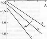 Как правило, линейной связью описывают сумму всех гидравлических сопротивлений в континууме почва — лист (диагональные прямые а, Ь. с обозначают постепенно повышающееся сопротивление транс- локации). Потенциал при транспирации, равной 0, означает равновесное состояние между растением и почвой в ранние утренние часы (PD, predawn water potential). А— нормальное снижение без гистерезиса; В — гистерезис в течение дня (время нанесено на график), указывающий на увеличивающееся затруднение водного транспорта (кавитация ксилемы или обезвоживание почвы вблизи тонких корней). При влажной почве большая крутизна линии регрессии также отражает патологические изменения в ксилеме или повреждения тонких корней (например, поражение грибами или корневая гниль)