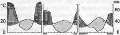 табл. 15.5). В Южном полушарии саванны господствуют от тропиков до южной окраины субтропиков, и занимают в Африке наибольшие площади. Аналогичные формы растительности — льяносы Ориноко, серрадос и часть равнин Гран-Чако в Бразилии и бассейне Параны, имеются они и в северной Австралии.Климат саванн представляет собой еще более сухой вариант климата полувечпозеленых сезонных лесов (см. 15.2.4), но годовое количество осадков здесь, как правило, меньше 1 500 мм, иногда менее 1 ООО мм, и здесь более выражено его варьирование по годам, что невозможно отразить на климадиаграмме. При сумме осадков менее 500 мм саванны сменяются полупустынями. В Африке, благодаря наличию высоко приподнятой древней гондванской платформы, на южных окраинах области возможны заморозки. Ночные температуры в течение зимнего полугодия там постоянно держатся ниже 10 °С.