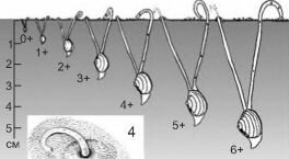 2.17. Собирающие детритофаги.1-3 — Cumacea: 1 — Iphinoe trispinoscr, 2,3 — Diastylus rathkei; 4-6— двустворчатые моллюски: 4 — разного возраста Масота balthica, отдельно показан входной сифон, собирающий детрит, вид сверху, 5 — Megayoldia thraciaeformis', 6 —Nucula tenuis', 7 — пескожил Arenicola. По разным авторам.