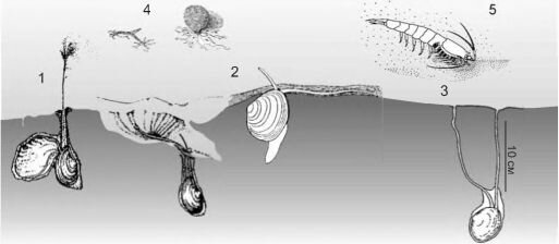 Общая характеристика. Питаются всегда активно, создавая ток воды через фильтрационный аппарат. В той или иной степени закапываются в грунт. Максимального развития достигают на песках, чистых или заиленных, в прибрежных районах и на банках, на-