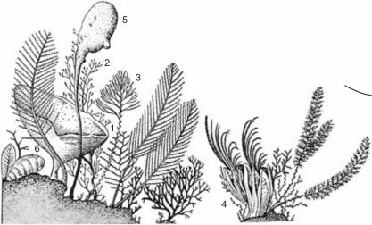 нектонные организмы и плавник (стволы деревьев). Основу современного пелагического обрастания составляют морские уточки (Crustacea, Cirripedia. Lepadidae). В другие периоды времени пелагическое обрастание выглядело, по-видимому, совсем иначе. Так, в мезозое в его состав входили колоссальных размеров стебельчатые морские лилии (рис. 3.11).