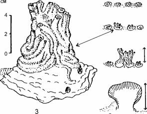 Рис. 3.54. Рост сабелляриевых рифов на разных субстратах и строение отдельных колоний. По