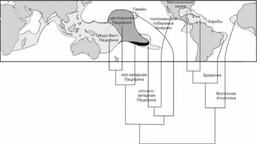 - Как число видов, так и семейств у восточных берегов Тихого и Атлантического океанов гораздо меньше, чем у западных.