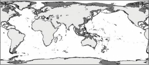 большая часть детрита выносится за его границы, поэтому на более узких шельфах развиваются не все зоны. Первой исчезает зона грунтоедов, затем детритофагов и даже фильтраторов инфауны (рис. 3.22). Ширина шельфа варьирует от 0 (некоторые места африканского побережья) до 1500 км (север Евразии и Северной Америки) (Баскаков, 1982; Баскаков, Шпайхер, 1982). Широкий шельф расположен преимущественно у берегов районов современного или плейстоценового оледенения: вдоль берегов Северного Ледовитого, севере и западе Тихого, севере и юго-западе Атлантического океанов, у Антарктиды, а также в Индо-Малайском архипелаге (рис. 3.23).