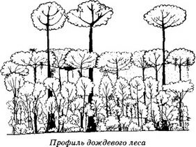 Дополнительную устойчивость придают деревьям стебли лазящих растений, достигающие 300 м в длину: они связывают кроны друг с другом. Пространство под вечнозеленым пологом позволяет довольно свободно передвигаться, видимость сохраняется в пределах 15 м. Из-за низкой освещенности (в среднем 1% интенсивности освещения на открытом пространстве) подрост там очень скудный. В принципе по тропическому лесу можно проехать на велосипеде, хотя такой способ передвижения и не рекомендуется. Ho уж при любых обстоятельствах прорубаться с помощью мачете нет никакой нужды.