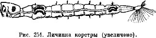 цу тела. Когда же куколка совершенно освободится от гусеничной шкурки, крошечные крючки на заднем конце ее брюшка зацепляются за нити заранее подготовленной шелковой площадки, и куколка остается подвешенной вплоть до вылупле- ния из нее бабочки (совершенно таким же образом, как у боярышницы, происходит окукливание и у ее родичей — капустницы и репницы; см. рис. 196 и 197).