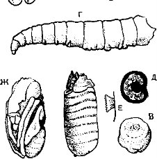 При наблюдениях в садке можно проследить, как гусеница, найдя подходящее место, сначала устраивает около заднего конца своего тела маленькую шелковую площадку, а затем опоясывает себя тонкой шелковинкой, которая поддерживает ее тело, не давая ему откидываться вниз (шелковистая нить, твердеющая на воздухе, выделяется гусеницами через особое отверстие на нижней губе). После этого гусеница принимает сгорбленную позу, а примерно через сутки можно наблюдать ее превращение в куколку: шкурка гусеницы лопается па спинке у ее переднего конца и мышечными усилиями насекомого постепенно сдвигается к заднему кон-