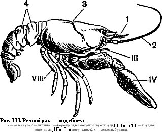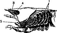 1 — нервная цепочка; 2 — слепые мешки кишечника; 3 — органы выделения; 4 — органы размножения.