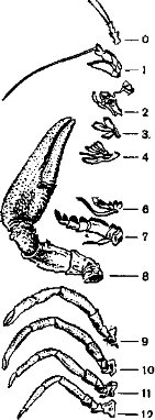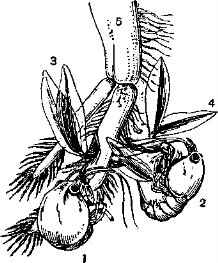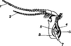 У подвижных форм на головном конце хорошо развиты органы чувств (глаза, щупальца), имеются острые челюсти, а щетинки сидят целыми пучками на особых бугорках или выступах тела, которые способны двигаться, и представляют, таким образом, наиболее простую, зачаточную форму конечностей. Поэтому по общему облику такие ползающие морские черви (рис. 94) напоминают наших многоножек, да и вообще по своей организации стоят ближе к типу членистоногих, чем наши Рис. 94. дождевые черви.