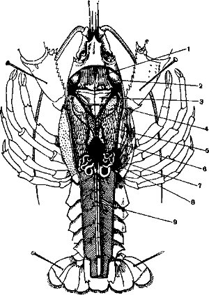 Вскрытие пиявки удается труднее, чем вскрытие дождевого червя, и мы поэтому не будем его здесь описывать (трудность зависит от того, что кожно-мускульный мешок срастается с кишечником). На вскрытом животном (рис. 98) мы могли бы видеть, что по общему типу строения пиявка напоминает дождевого червя (спинной и брюшной сосуды, сегментарные органы — нефридии, брюшная нервная цепочка с ганглиями по отдельным сегментам и с надглоточным узлом на головном конце), но отдельные сегменты тела у пиявки теснее связаны между собой, причем истинная внутренняя сегментация не соответствует более мелким наружным колечкам, в которых выражается приспо-