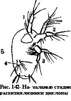 и действительных гидроидных полипов (включая гидру) и мшанок, колонии которых образуют невзрачный, как бы мшистый, буроватого цвета налет на нижней поверхности листьев кувшинок д на различных подводных предметах (рис. 102).
