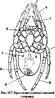 Только в сырую погоду или по ночам мы можем видеть их в деятельном состоянии, ползущими по земле или поедающими мякоть растений. Наиболее часто попадается сравнительно небольшой сероватого цвета полевой слизень — опасный вредитель полевых посевов и огородных культур. Питаясь различными растительными объектами, слизень поедает всходы озими, портит капусту и другие огородные овощи; нередко мы находим его и на различных грибах, в которых он выедает глубокие впадины. В лесах мы можем встретить также очень крупного — до 15 см длиной — красновато-бурого лесного слизня (рис. 117).Строение тела слизня. Строением головы и ноги голые слизни очень похожи на других наземных улиток (отсюда наивное представление, будто слизень — это улитка, которая выползла из своего «домика»). Но, в отличие от прочих улиток, мантия у слизня покрывает только незначительную часть его тела в виде овального выпуклого возвышения на спинной стороне и известковой раковины на ней не образуется.