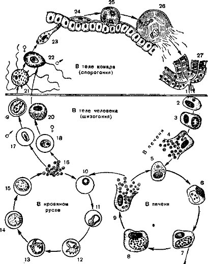 Немало среди инфузорий и паразитических форм, живущих в теле других животных. Есть инфузории, паразитирующие в кишечнике человека и вызывающие опасные заболевания. Особенно много инфузорий живет в пищеварительных органах травоядных млекопитающих (рис. 33): так, общий вес инфузорий, населяющих рубец быка, то есть тот отдел его желудка, где корм подвергается брожению, достигает 3 кг. Однако эти инфузории не только не причиняют вреда здоровью травоядных животных, но, по-видимому, способствуют перевариванию грубых растительных кормов.