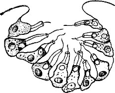 Сидячий образ жизни ведет отчасти и стентор, или трубач, — крупная инфузория, получившая свое название за сходство с трубой из духового оркестра (рис. 32).