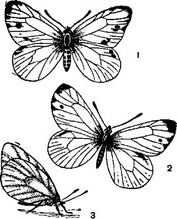 Во второй половине лета в лесах и садах часто встречаются пауки-крестовики (несколько похожих между собой видов). Их легко узнать по гладкому шарообразному брюшку, на котором сверху по буроватому фону выступает светлый узор в виде крестика (отсюда и название). Паутина у них также имеет очень характерную форму в виде вертикально натянутой сети и состоит из многочисленных оборотов спиральной нити, которые поддерживаются, прямыми паутинными нитями, лучеобразно расходящимися из одного центра (рис. 156).