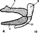Рис. 273. Скелет пальца кошки с втянутым (А) и выпущенным (Б) когтем: