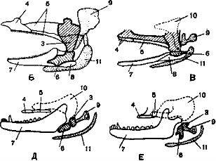 Длинными и острыми клыками кошка прокусывает позвоночник жертвы и умерщвляет ее. Для размельчения пищи кошка применяет коренные зубы; при этом челюсти ее сжимаются с большой силой. Недаром у нее так сильно развиты височные и жевательные мышцы, придающие кошачьей физиономии ее характерный скуластый вид (посмотрите, как отразилось это на строении черепа и какой вид имеют у кошки ее скуловые дуги, огибающие жевательные мышцы). При сжатых челюстях передние коренные зубы плотно смыкаются между собой своими краями и помогают кошке разрывать добычу на части, а острые плотоядные зубы заходят друг за друга и режут мясо и сухожилия жертвы подобно лезвиям ножниц.
