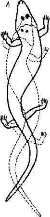 При неполном насыщении крови кислородом в жабрах в легкое поступает лишь частично окисленная кровь и там доокисляется. В правую половину предсердия поступает венозная кровь из венозной пазухи, в левую артериальная кровь из легкого. Перегородка предсердия затрудняет перемешивание крови. При сокращении предсердия более артериальная кровь течет вдоль складки желудочка и спирального клапана артериального конуса и попадает преимущественно в первые приносящие жаберные артерии, получает дополнительно кислород в жабрах и идет в голову и корни аорты. Более венозная кровь из правой части предсердия идет преимущественно в задние приносящие жаберные артерии, получает в жабрах какое-то количество кислорода и попадает в корни аорты, а частично — через легочную артерию — в легкие. Большой и малый круги кровообращения, таким образом, разобщены очень слабо. Однако это делает возможным одновременное использование жаберного и легочного дыхания; причем более артериальная кровь поступает в голову, а по телу и в легкие идет смешанная кровь. Есть своеобразные черты и в периферической системе. Задние кардинальные вены развиваются относительно слабо. Основная масса крови из капилляров обеих почек в конечном счете попадает в крупный сосуд — заднюю полую вену (v. cava posterior), впадающую непосредственно в венозную пазуху (рис. 121, 16).