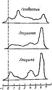 Особенно разнообразны звуки, издаваемые с помощью плавательного пузыря: они напоминают барабанный бой, хлопки, свист, ворчание, кудахтанье, жужжание, стоны и т. д. У рыбы-жабы (батрахо- образные) на внешней стенке сердцевидного плавательного пузыря расположены плоские барабанные мышцы, а полость пузыря разделена плотной диафрагмой с отверстием посредине (рис. 136, А)\ издает звуки, похожие на хрюканье и пароходные гудки. У терапонов (окунеобразные) барабанные мышцы прикрепляются к затылочному отделу черепа и к стенкам передней части плавательного пузыря (рис. 136, Б), звуки напоминают хлопки или барабанную дробь. Низкие ворчащие звуки издает макрурус (трескообразные), у которого лентовидные барабанные мышцы лежат ' по бокам плавательного пузыря (рис. 136, В). Звуковые вибрации стенок плавательного пузыря могут вызывать колебания косточек веберова аппарата, костей пояса грудных плавников или ритмичные удары плавниковых лучей по телу. Пока не выяснены механизмы звучания у бычков, белуги и ряда других рыб. Частоты издаваемых рыбами звуков лежат в пределах 20—12 000 Гц, т. е. в пределах чувствительности их слухового аппарата. Наиболее разнообразные акустические сигналы свойственны сумеречным и придонным рыбам, рыбам со сложной популяционной структурой.