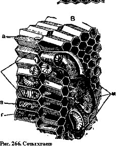 Местами медведку неправильно называют «земляным раком» или даже «земляной вошью». В действительности ее скорее можно было бы назвать членистоногим или крылатым кротом, так как и у медведки и у настоящего крота в процессе эволюции выработались сходные приспособления к подземному, роющему образу жизни; мы имеем здесь интересный пример конвергентного сходства, между животными, относящимися к двум далеким между собой типам животного мира (рис. 216).
