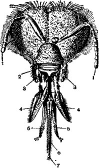 медведка по целому ряду существенных признаков строения обнаруживает сходство со сверчками и кузнечиками. Сходство это мы обнаружим в общем расчленении тела, в строении головы с ее ротовыми придатками, в строении брюшка,