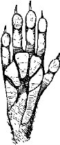 Рис. 443. ков и склонность валяться Четырехпалая в грязи; однако если эта лапа свиньи. ГрЯЗЬ оказывается не болотной, а навозной, какая бывает в запущенном свинарнике, то пребывание в такой грязи вредит здоровью свиньи; в этом смысле свинья любит чистоту.