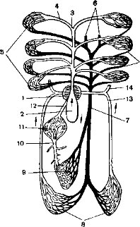 Но плавательный пузырь служит для рыбы не только гидростатическим аппаратом; как выяснили физиологи, он выполняет и другую, и притом еще более важную функцию, связанную уже с работой кровеносной системы.