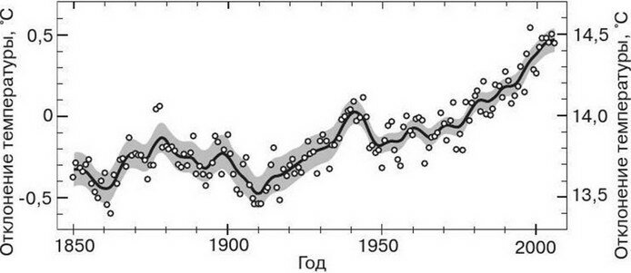 собраны воедино и по ним была найдена среднегодовая температура — средняя по всей поверхности земного шара, оказалось, что она заметно возросла. И вот это явление (и только его!) климатологи называют «глобальным потеплением климата».