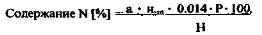 где: а - количество щвлочи пошедшей на титрование, мл; н.и - нормальность щСлочи; Р - разведение 200/10=20; 100 - для выражения данных в процентах; 0.014 - мг экв азота: Н - навеска удобрения, г. Форма записи