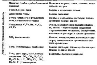 Постоянными компонентами процессов биогеохимической миграции и дифференциации вещества на суше являются продукты механического и химического разрушения, суспензии, коллоидные, молекулярные, ионные растворы, аэрозоли, летучие соединения и газы минерального, биогенного и антропогенного происхождения (табл. 28).