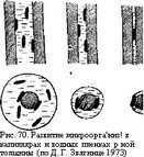 Аэробное разложение целлюлозы. Аэробные целлюлозоразлагающие микроорганизмы наиболее полно выявляются с помощью метода почвенных пластинок. Почву обогащают соединениями калия и азота (2 мл 1,5%-ного раствора KN03 на 50—60 г почвы). Обогащенную навеску размешивают, увлажняют и помещают в чашку Петри, на дно которой предварительно кладут стерильные обеззоленные фильтры или фильтровальную бумагу. На поверхность почвенной пластинки также накладывают кружок фильтровальной бумаги и плотно прижимают его к поверхности пластинки. Чашки с пластинками инкубируют во влажной камере. Срок инкубации варьирует в зависимости от свойств почвы. Для дерново-подзолистой почвы этот срок можно ограничить несколькими неделями, для чернозема срок инкубации может быть увеличен. Результаты опыта определяют по степени и характеру разложения бумаги. В дерново-подзолистой почве целлюлозоразлагающие микроорганизмы представлены обычно грибами, в черноземе — мик- собактериями.