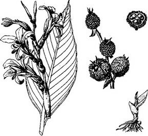 В оранжереях широкое распространение получило растение с красивыми красными, желтыми или пестрыми цветами и большими овальными гладкими и блестящими листьями —