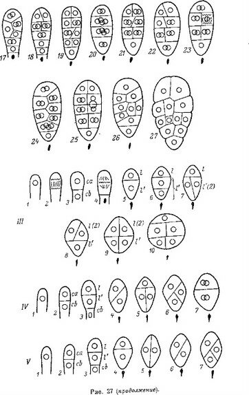 Таким образом, для всех изученных представителей группы растений с третьей формой паразитизма характерна высокая специализация способов послесеменного развития и строения проростков-протосом. Сходное в общих чертах направление этой специализации указывает еще раз на общность факторов их эволюции.