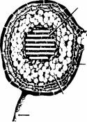 Независимо от того, где расположено гнездо, оно обычно строго разделено на зоны. Непосредственно под защитной оболочкой помещаются ячейки для хранения запасов (рис. 6.2)-больших горшочков с медом или пыльцой; на верхней стороне этих ячеек имеются отверстия, которые позже запечатываются (у одного вида мелипон пыльца хранится в конусовидных горшочках). В отличие от Bombus, использующего для хранения запасов отремонтированные старые личиночники, мелипоны строят для этой цели специальные ячейки. Насколько позволяет выбранная ими полость, они устраивают второй панцирь-своего рода обшивку или вторую линию обороны-между оболочкой и камерой для расплода; сама эта камера находится в перфорированной капсуле, поддерживающей ячейки для расплода, собранные в комки, грозди, горизонтальные пластинки или даже спирали. Каждая шарообразная ячейка, состоящая из мягкого церумена, открывается вверху; иначе и не могло бы быть, так как ее наполняют жидким питательным веществом, откладывают в нее яйцо, запечатывают и больше не трогают. Ячейки строятся независимо одна от другой, а не в виде сота; только часть стенок у них общие, и относительное расположение ячеек фиксируется подпорками и столбиками из церумена (Roubik, 1979). Поскольку каждая ячейка структурно независима, то после того, как личинка сплетет кокон, ячейка сохраняет целостность и без церумена; кроме того, после вылета имаго данная ячейка может быть разрушена, а в группе, расположенной несколько выше, начато строительство новой ячейки, как у Bombus, но на достаточно большом расстоянии, на подпорках, служащих временными лесами.